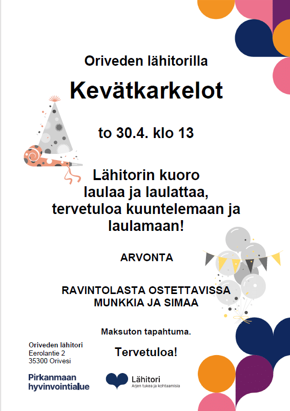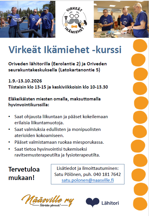 Asahi ilmoittautuneille keskiviikkoisin klo 9 6.5. asti. Mukaan mahtuu vielä, ilmoittautumiset p. 040 6853 997 tai lahitori.orivesi@orivedenpalvelutalo.fi.